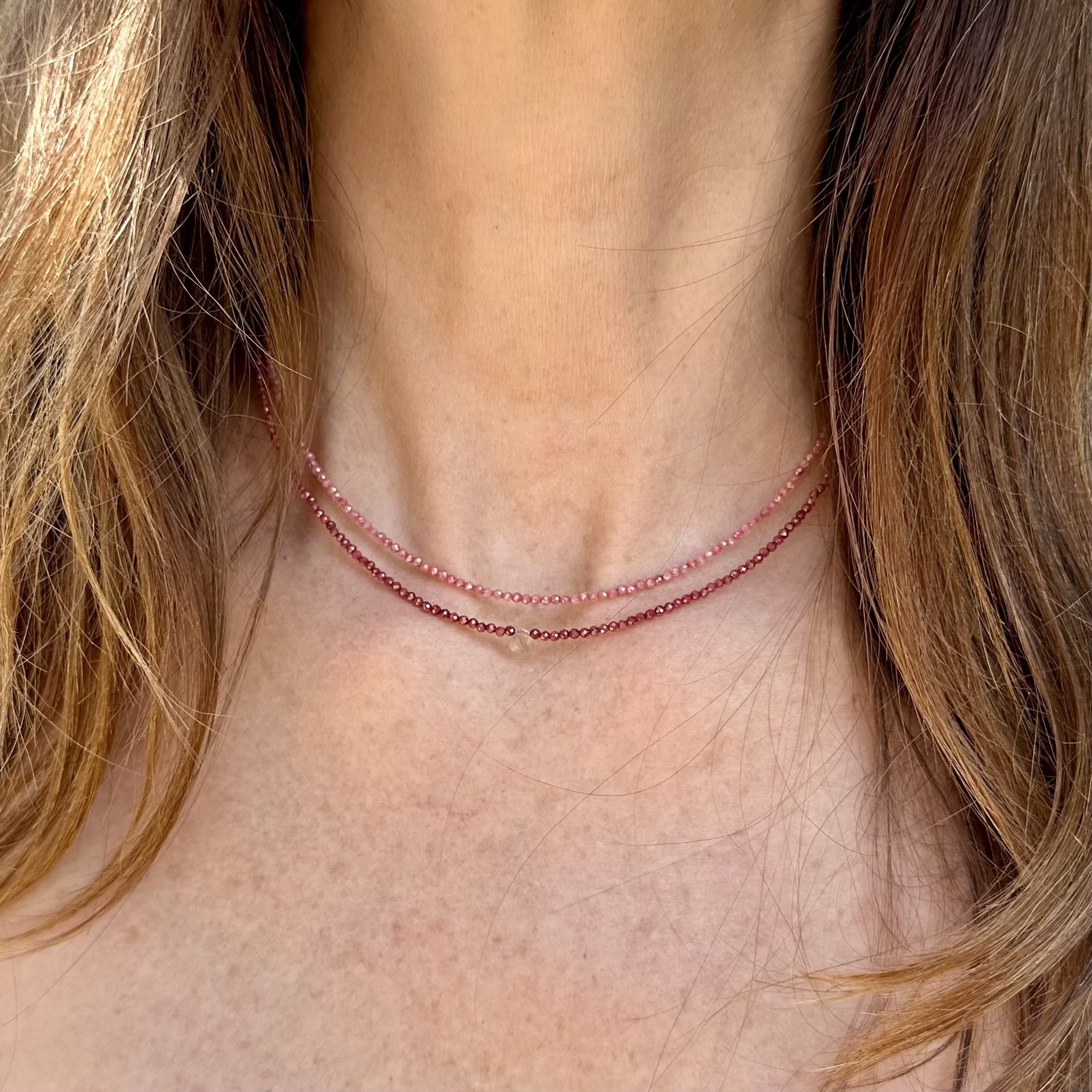 • Collane girocollo doppie di due colori differenti con goccia centrale in: