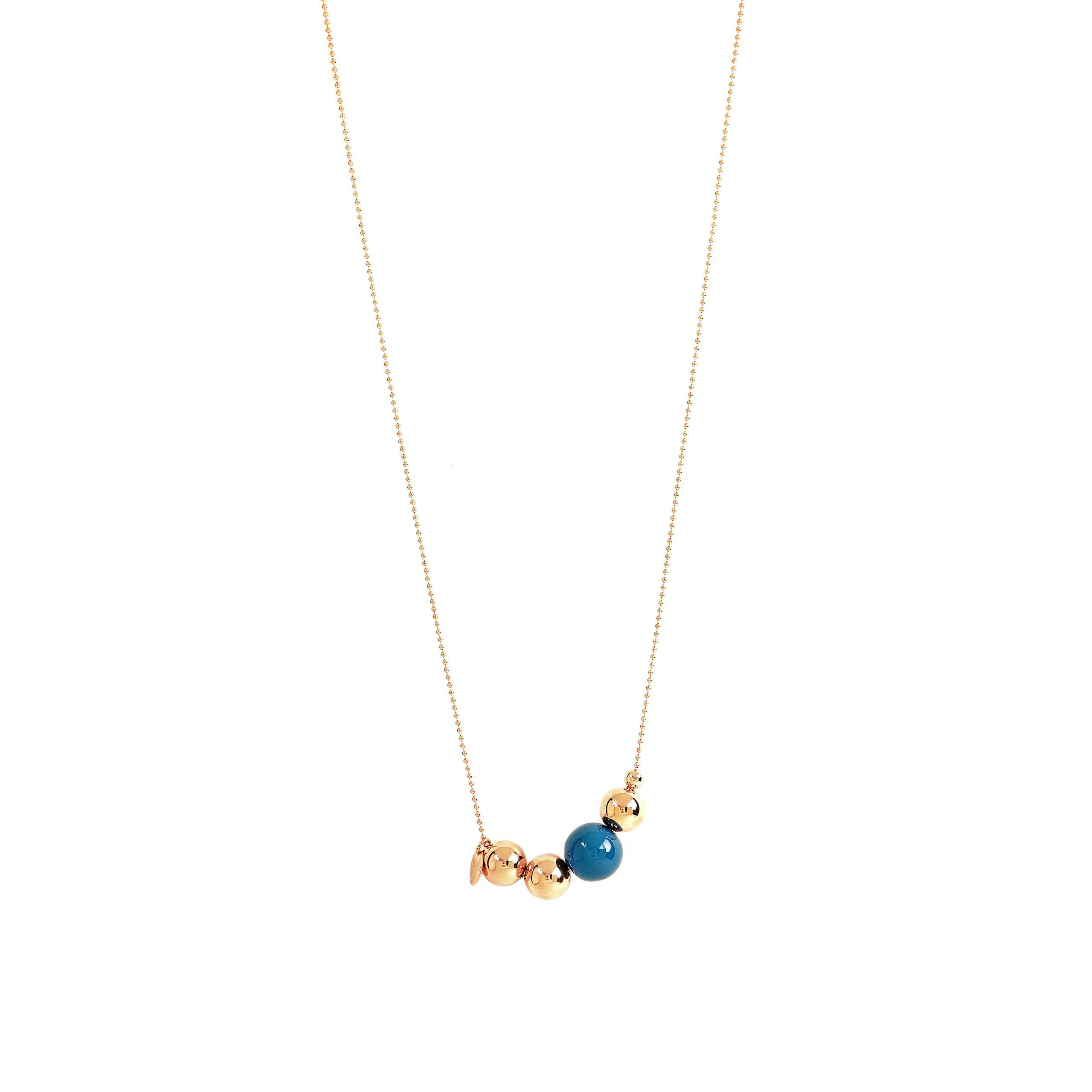 • Collana con catena pallinata in ottone placcato oro rosa 18 k con 5 sfere di diverse dimensioni posizionate lungo la catena. Una sfera è rivestita di smalto lucido
